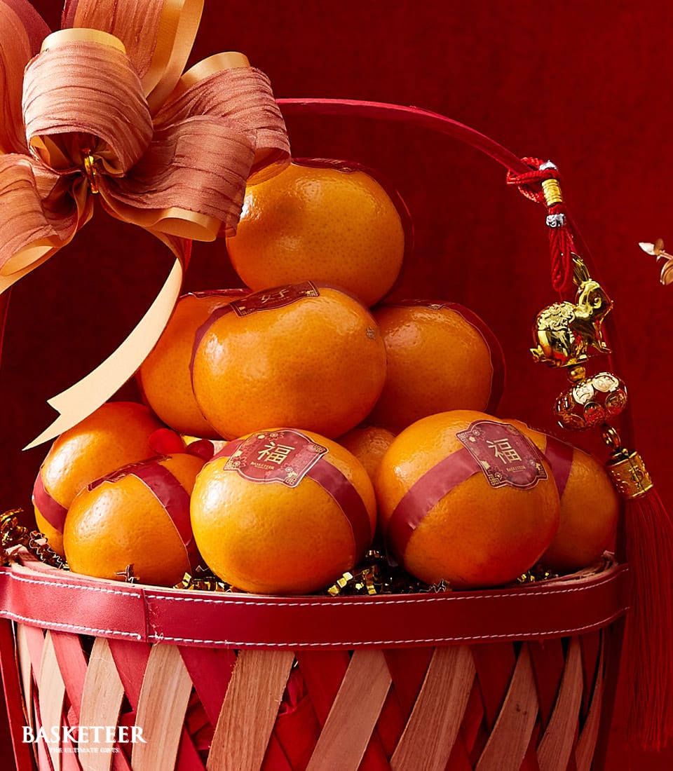 Luxurious Prosperity Mandarin Selection Gift Welcome the Chinese New Year with this Prosperity Mandarin Basket. Handcrafted with red and gold accents, it symbolizes good luck and abundance. Perfect for sharing festive joy with loved ones or as a thoughtful gift for any occasion.
