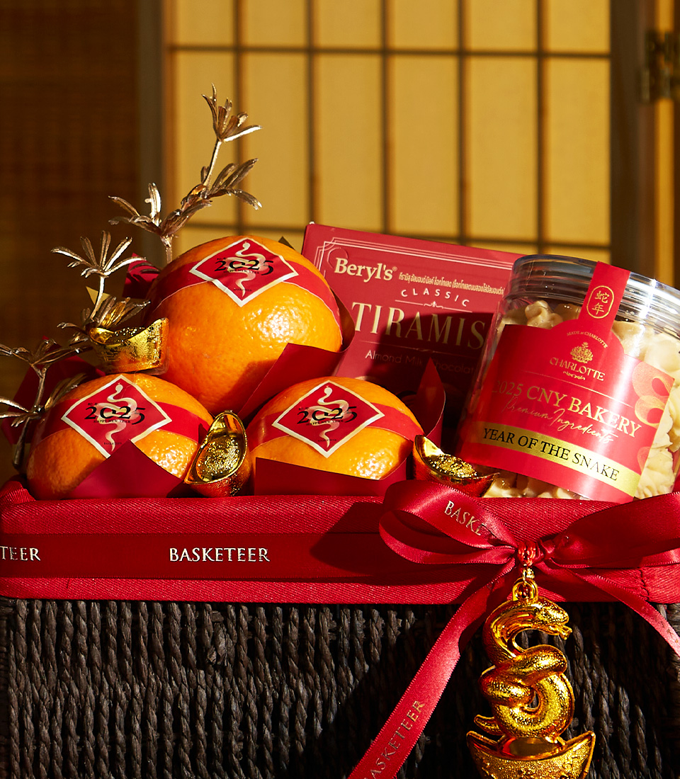 Prosperity Gift Basket with premium oranges and sweets. Perfect for Chinese New Year celebrations and spreading joy and luck.