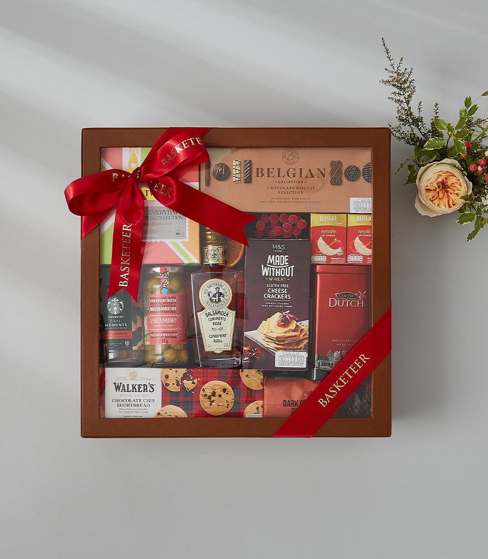 European Gourmet Selection Gift Box Celebrate any occasion with this elegant hamper filled with gourmet delights. Includes premium teas, Belgian chocolates, cookies, and more to make any moment special.
