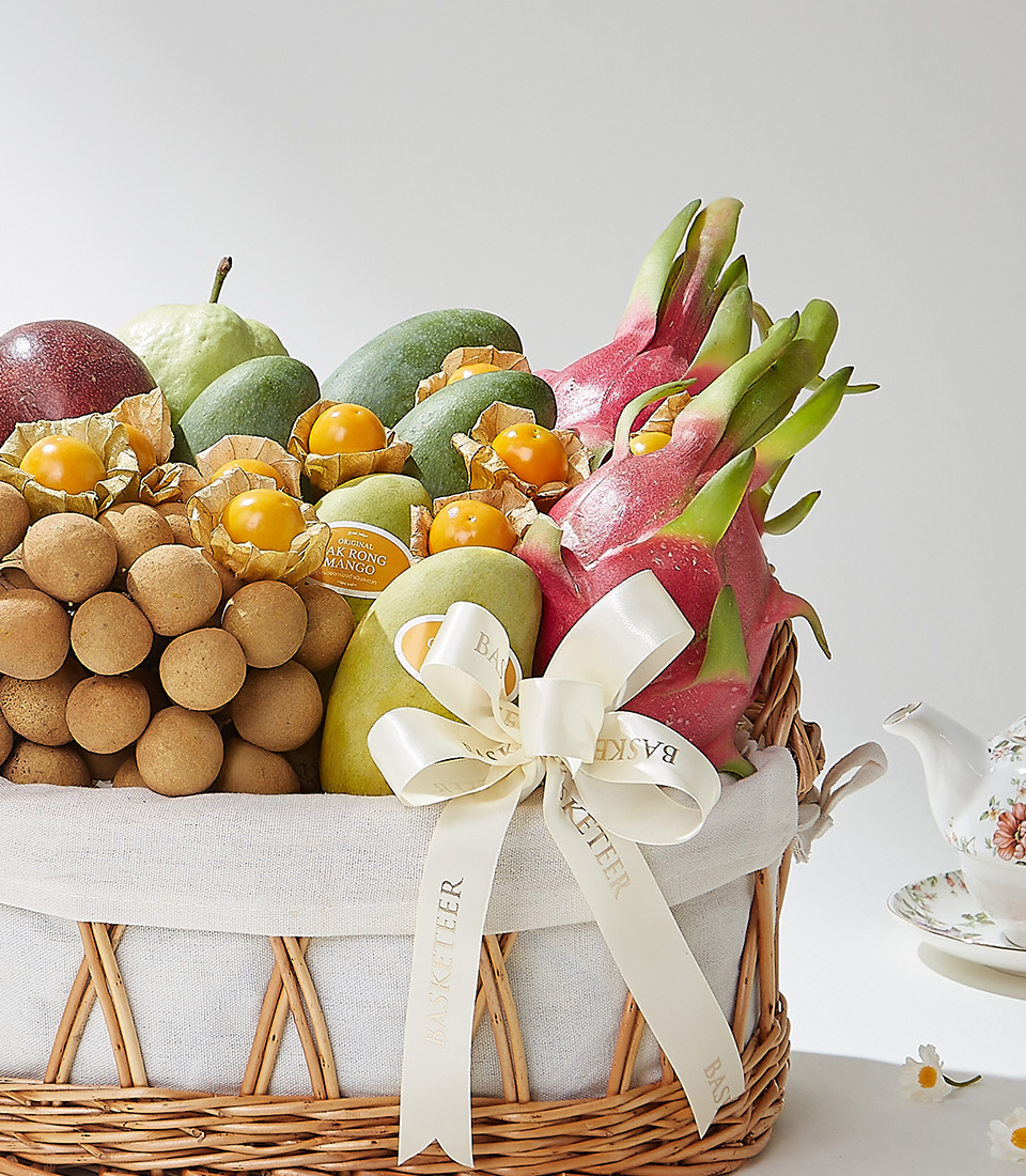 Exotic Tropical Fruit Basket The Thai Summer Fruit Basket is a delightful assortment of Thailand’s freshest tropical fruits, handpicked for their sweetness and quality. This vibrant basket includes a mix of seasonal favorites like Ok-Rong Mangoes, Longans, Cape Gooseberries, and Dragon Fruits, all beautifully arranged and perfect for any occasion. Ideal for gifting, it brings the taste of Thailand to your doorstep.