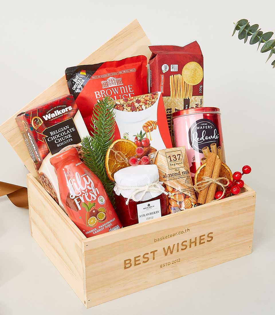 Gastronomic Grandeur Gift Basket Celebrate the festive season with the Festive Delight Hamper, a beautifully curated collection of delectable treats and premium snacks, perfect for sharing with family and friends or as a thoughtful gift for loved ones.