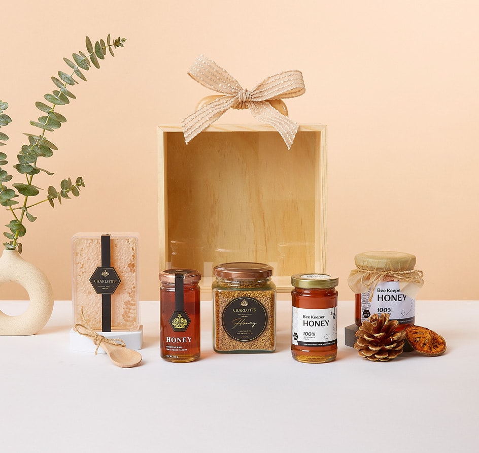 Honeycomb Harmony Box Beautifully packaged, the Luxurious Honey & Confectionery Gift Set is an ideal gift for any occasion, whether it's a birthday, anniversary, holiday, or a special treat to show someone you care. Celebrate the richness of natural honey and gourmet snacks with this sophisticated and tasteful collection.