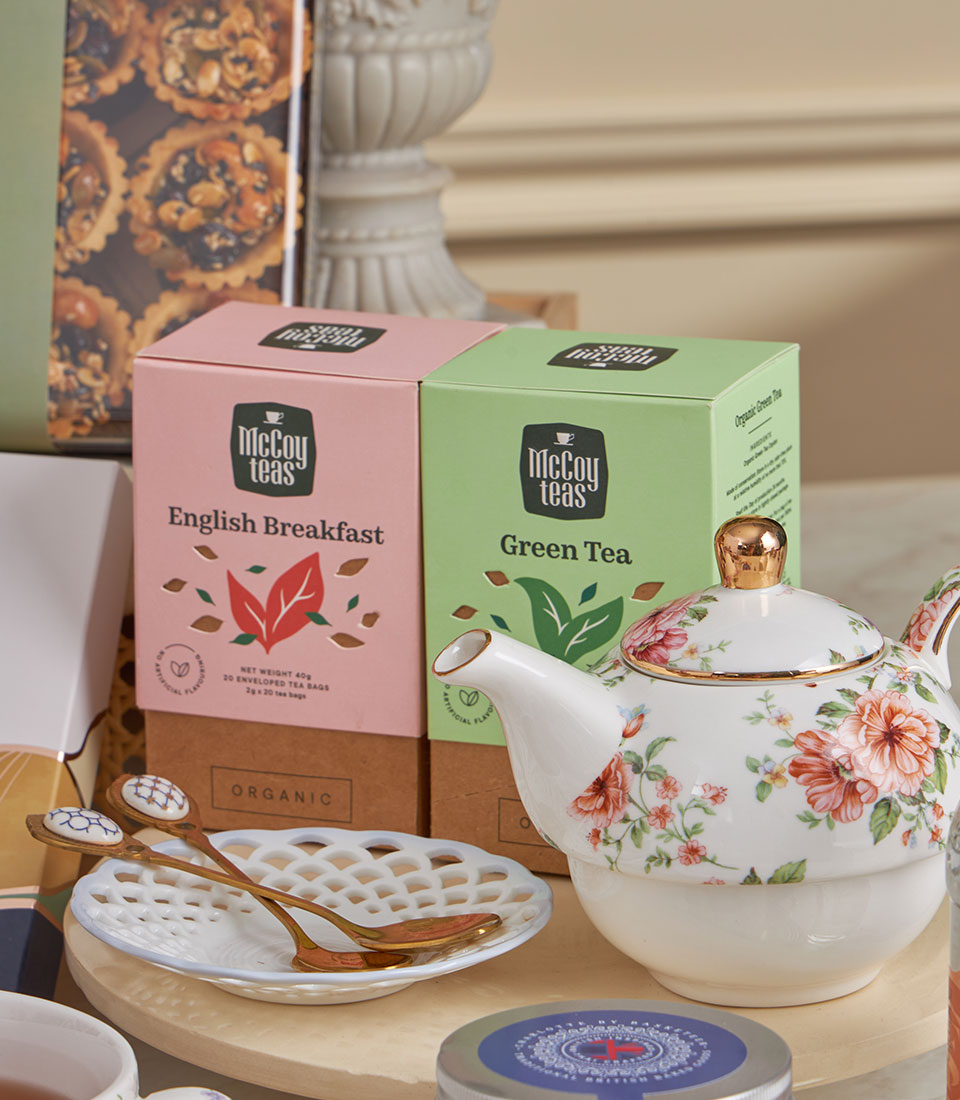 Heritage Tea & Gourmet Indulgence Hamper A luxurious selection of premium cookies, cakes, handcrafted truffles, and organic teas — curated to elevate meaningful celebrations and elegant gifting.