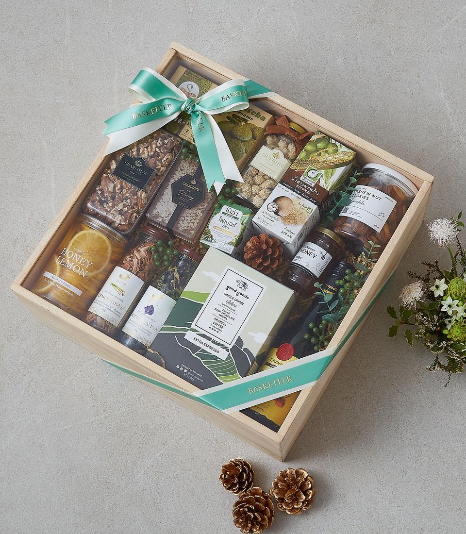 Great Rustic Elegance Celebrate life's simple pleasures with this heartwarming gift basket, filled with delicious snacks and cozy treats.