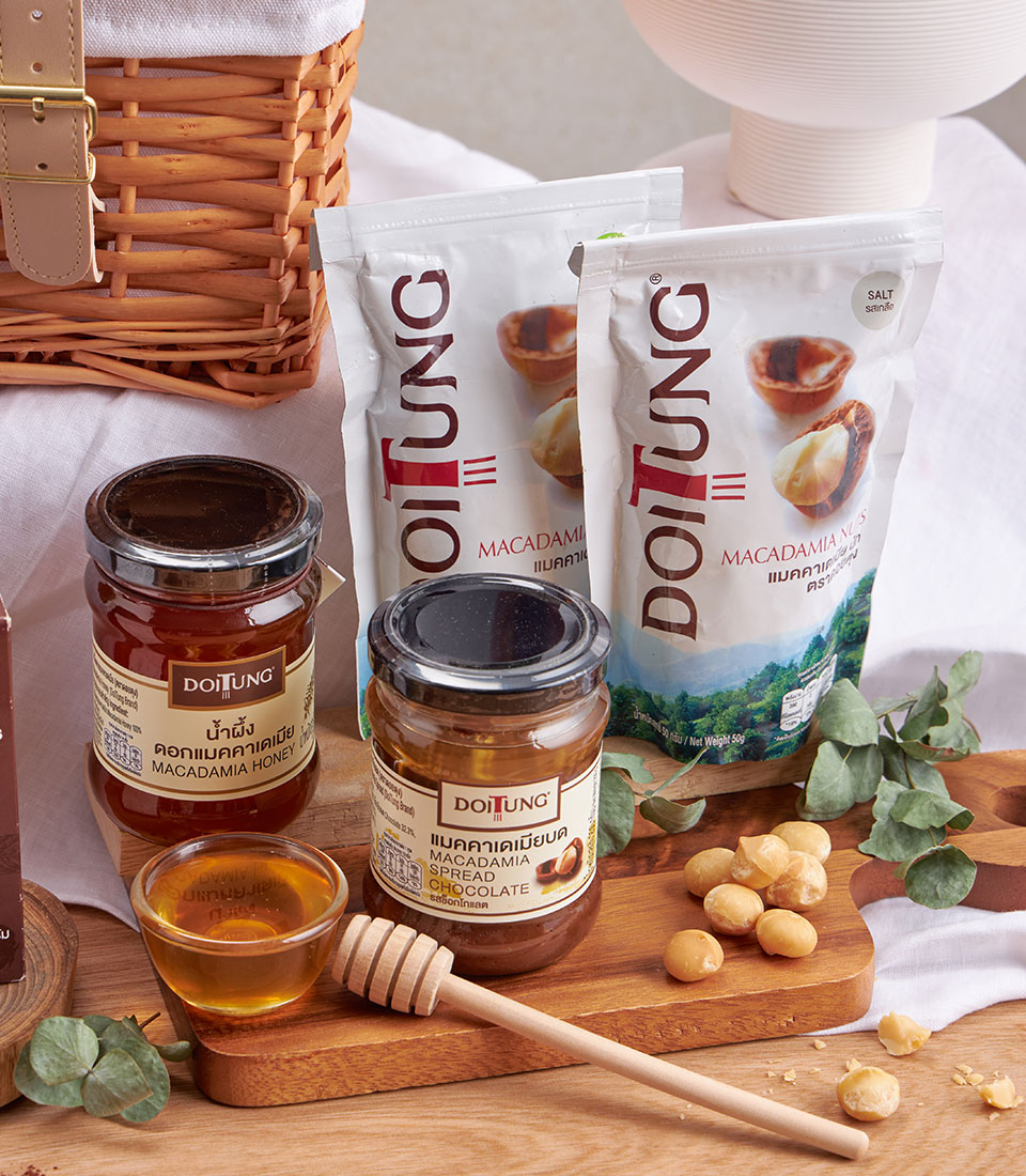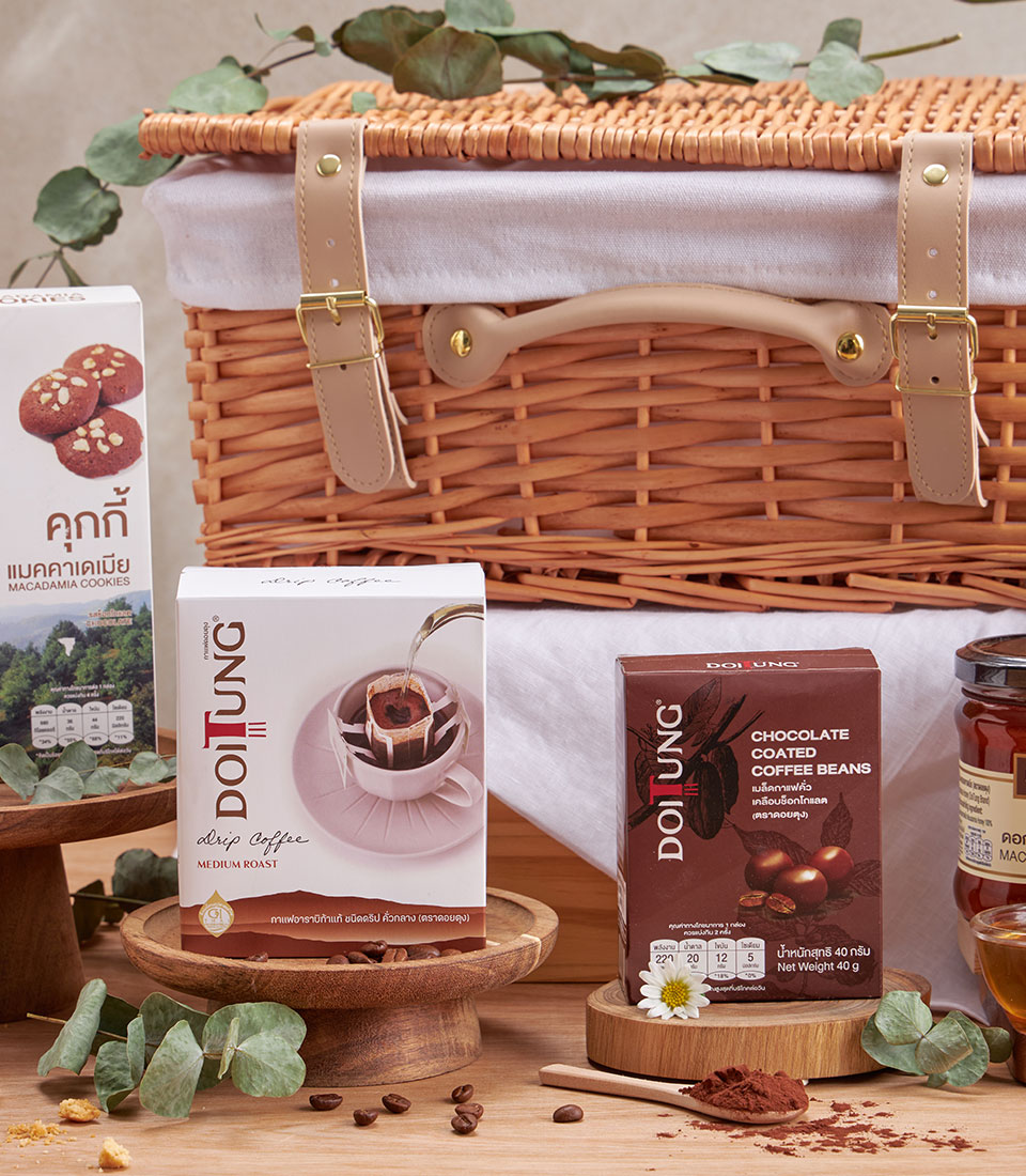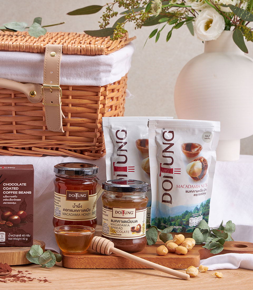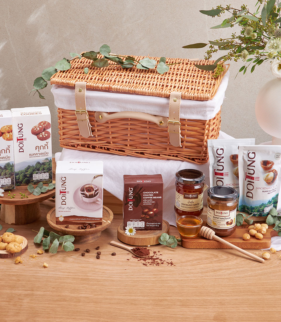 Doitung Macadamia Premium Gift Basket A thoughtful selection of Doitung’s signature macadamia cookies, nuts, chocolate treats, and honey. A perfect gourmet hamper for coffee lovers, macadamia enthusiasts, and premium gifting occasions.