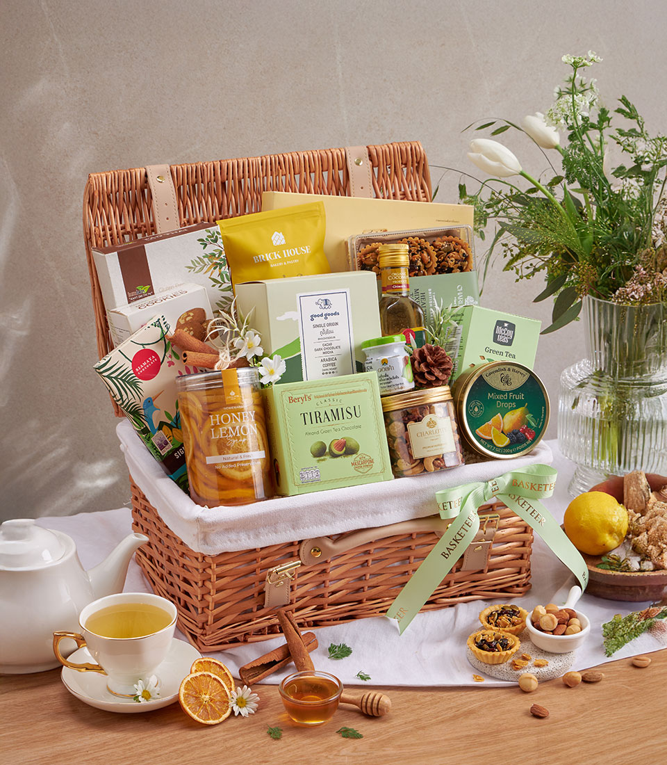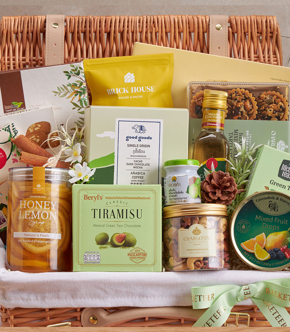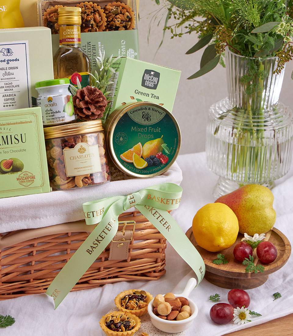 Premium Healthy Mixed Gourmet Gift Basket A luxurious curation of wholesome gourmet snacks, premium teas, nuts, natural honey, and healthy ingredients — ideal for festive gifting, corporate appreciation, and wellness-focused recipients.