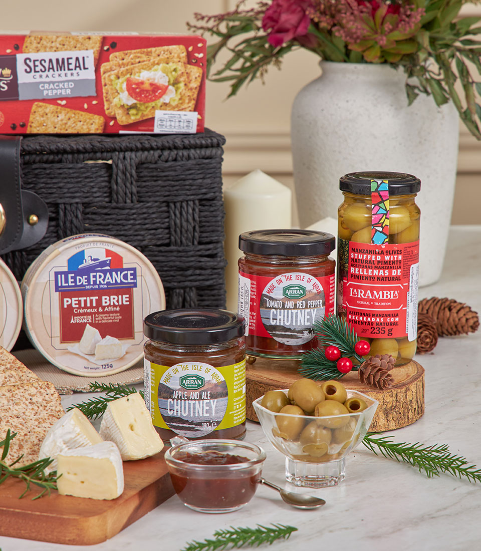 A sophisticated combination of imported grapes, fine cheeses, crackers and gourmet treats.