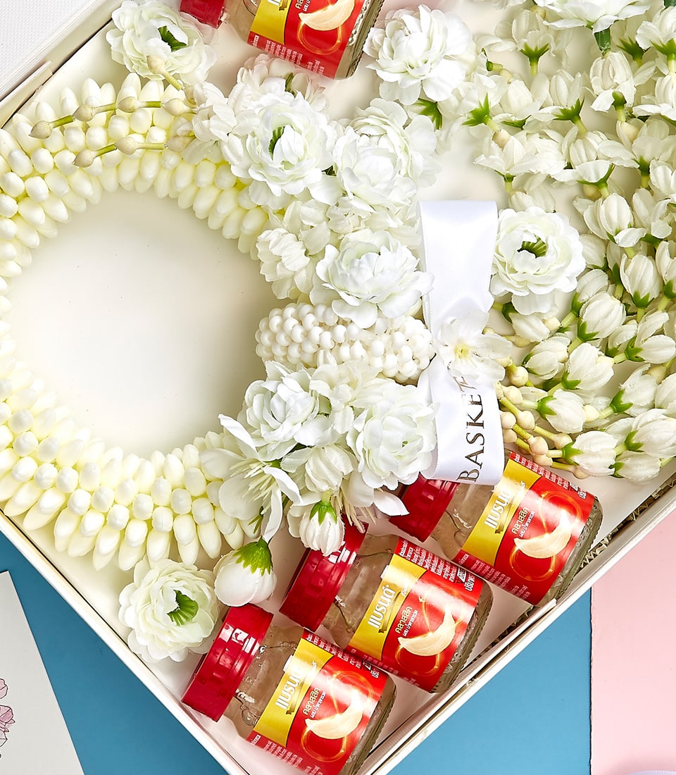 Check the basket contents Review the items inside the basket upon receiving the gift.