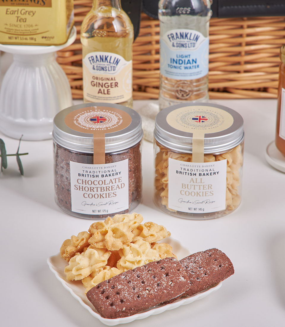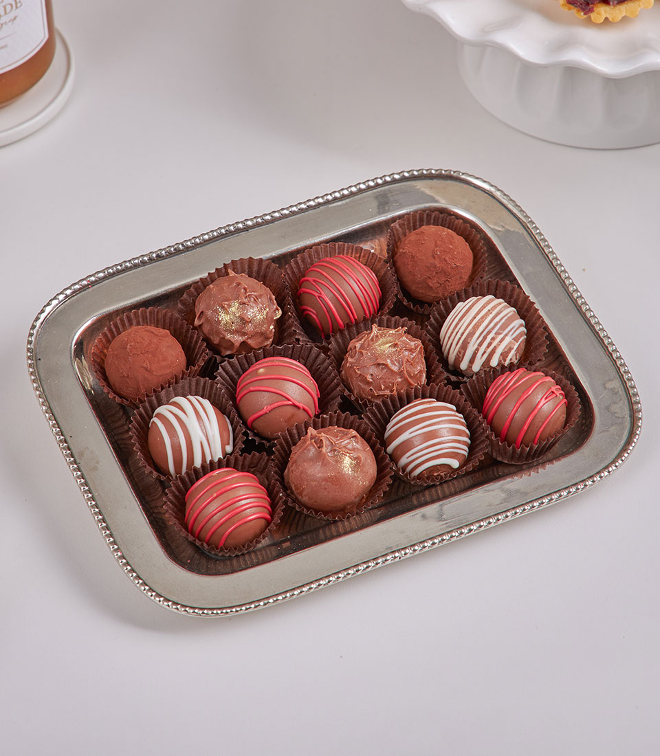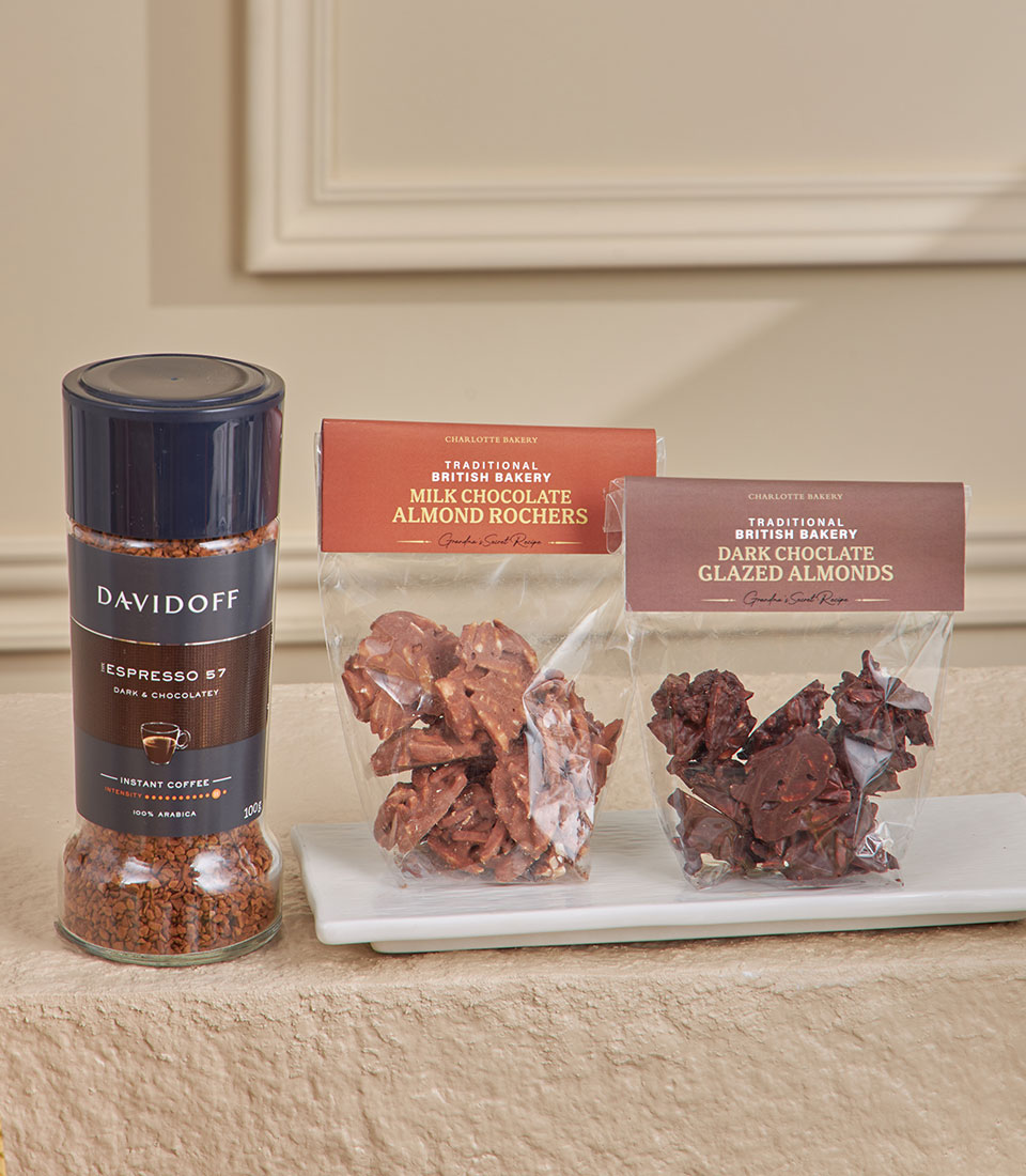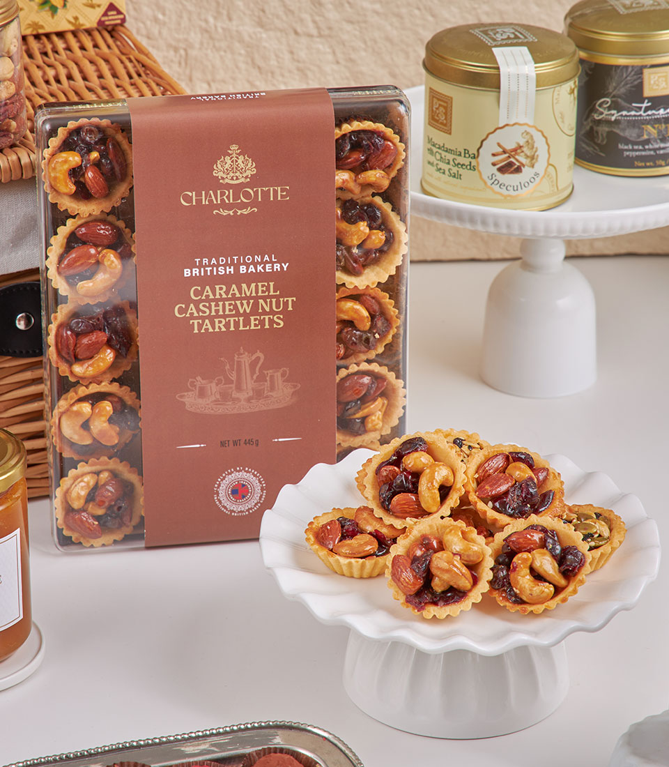 Grand Deluxe Chocolate & Tea Collection Our most indulgent gourmet hamper, generously filled with premium chocolates, cookies, nuts, teas, coffee and specialty sweets, styled on a grand dessert-table display to impress at first sight.