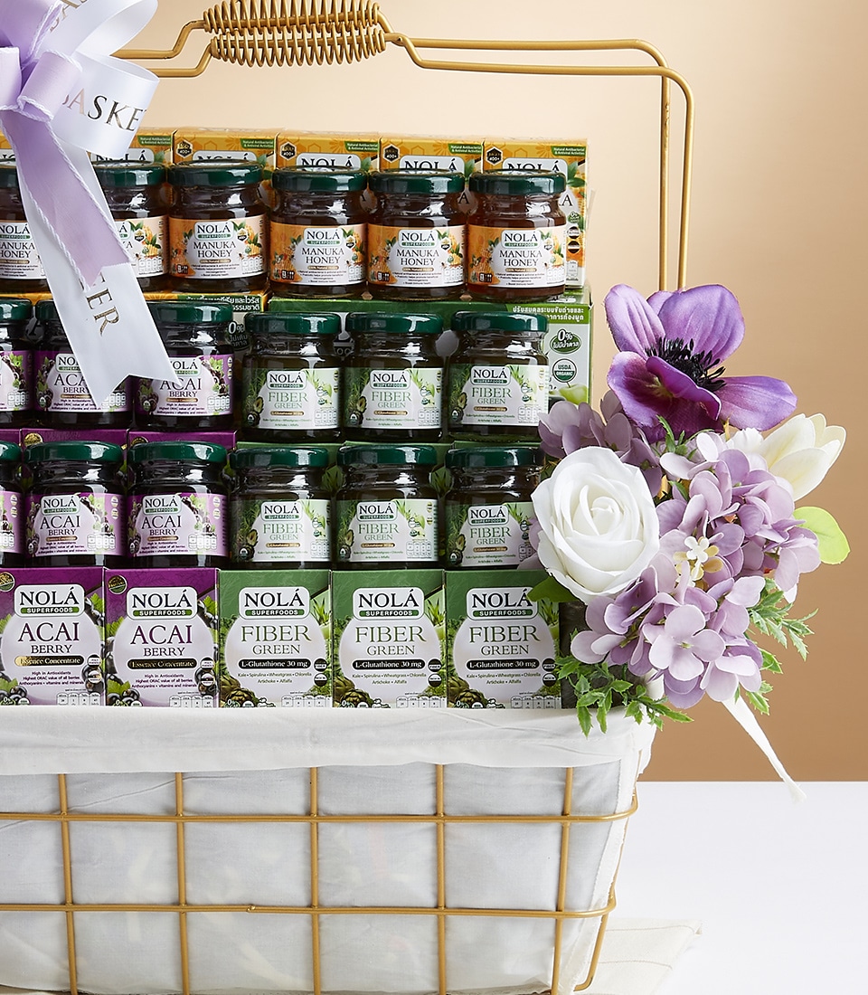 Nola Superfood Gift Basket is a gift basket from Nola Nola that focuses on high-antioxidant superfoods and beverages. Antioxidants have properties that help protect cells from free radicals, which are the main cause of premature aging, not only in the skin but also throughout the body. It is the ultimate natural nutrition with 100% organic food products that meet USDA standards. It can be considered as products that have not undergone genetic modification, do not use chemical fertilizers or dangerous chemicals in both the cultivation and production processes, ensuring 100% safety for consumers.