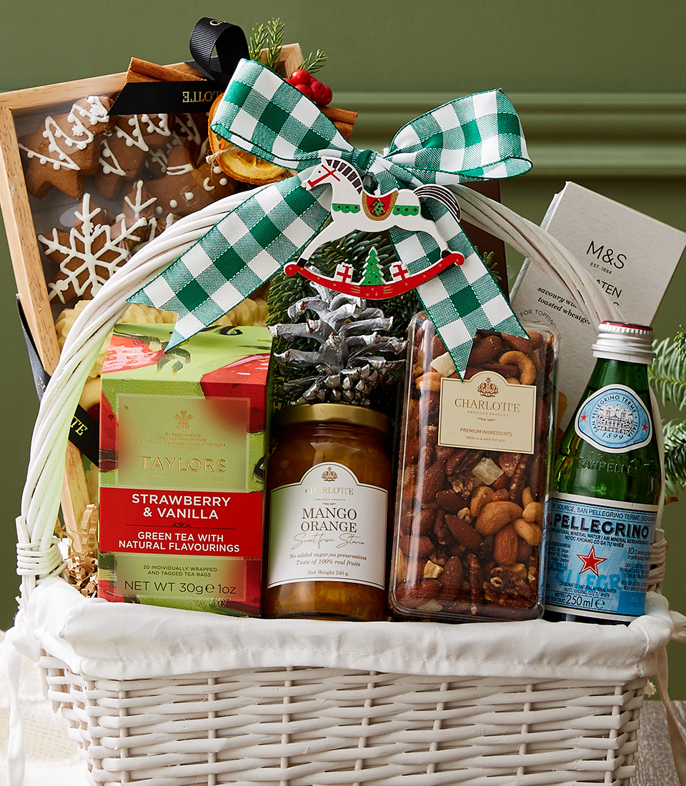 Christmas Tea & Nut Wellness Hamper Celebrate Christmas with this premium wellness hamper featuring Taylors strawberry vanilla green tea, roasted mixed nuts, mango orange jam, Pellegrino sparkling water, and festive cookies. Ideal for corporate gifts, family, and friends to enjoy healthy luxury treats this festive season.