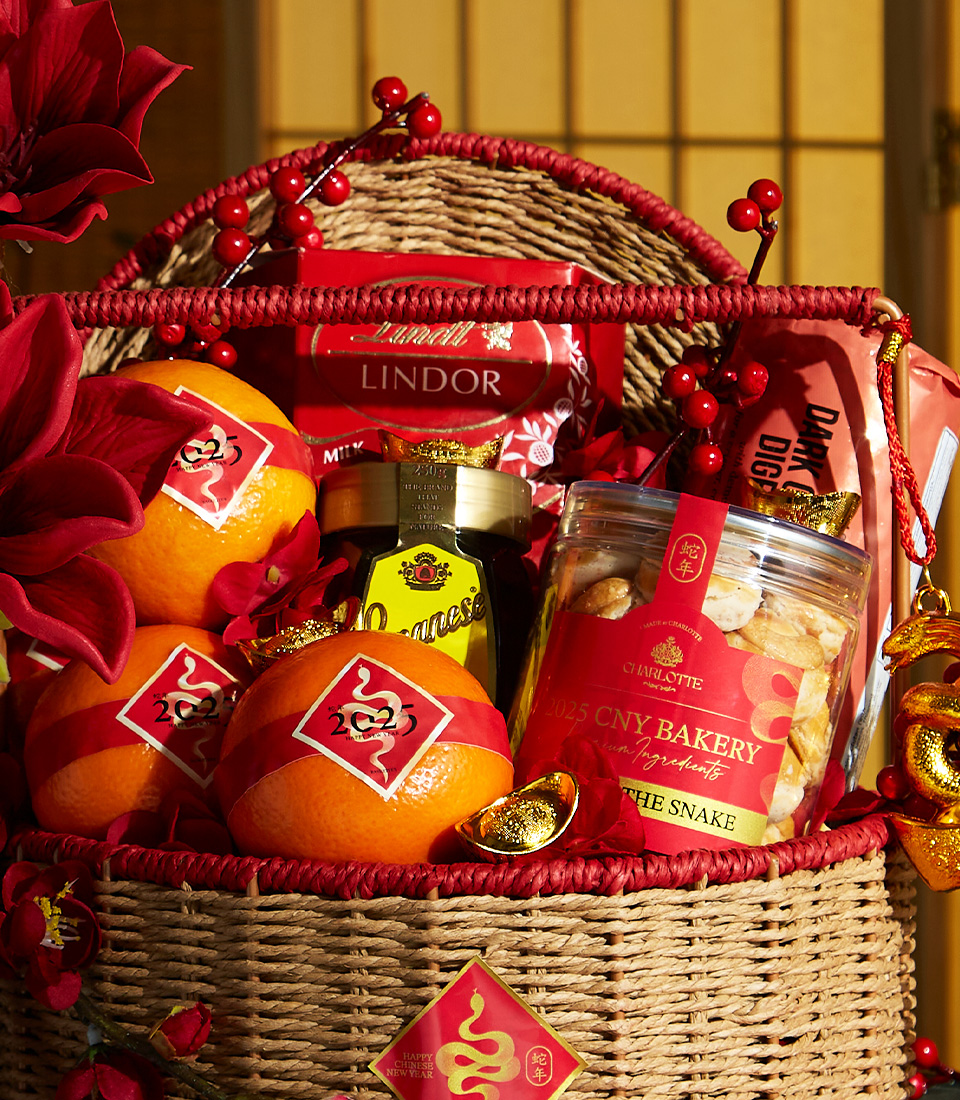 Celebrate Chinese New Year with a luxurious red hamper, featuring premium oranges and festive treats. A perfect gift for joy and prosperity.