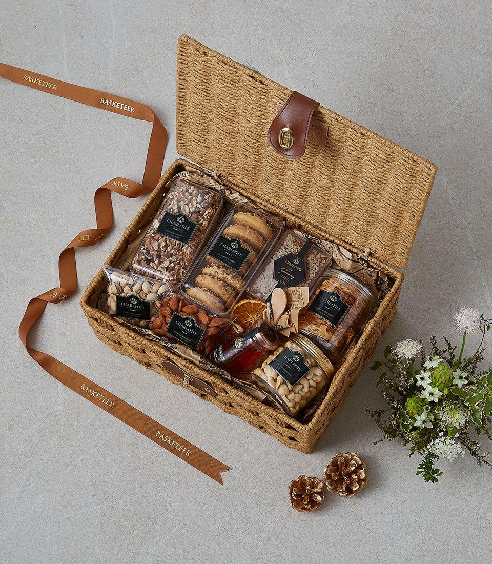 Celebrate life’s simple pleasures with a heartwarming gift basket, filled with delicious snacks and cozy treats. Perfect for any occasion.