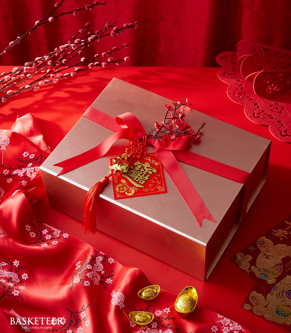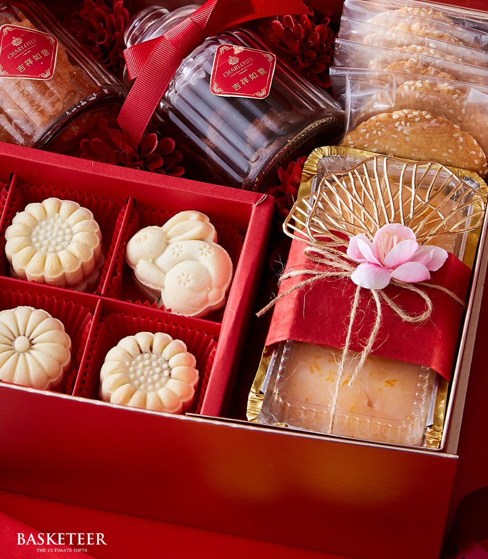Glamorous Lunar New Year Treats Gift Celebrate the Lunar New Year with a premium gift box filled with pineapple cakes, sesame cookies, and mini pound cakes. Thoughtfully packaged with festive decor, it’s perfect for sharing joy and prosperity with loved ones.