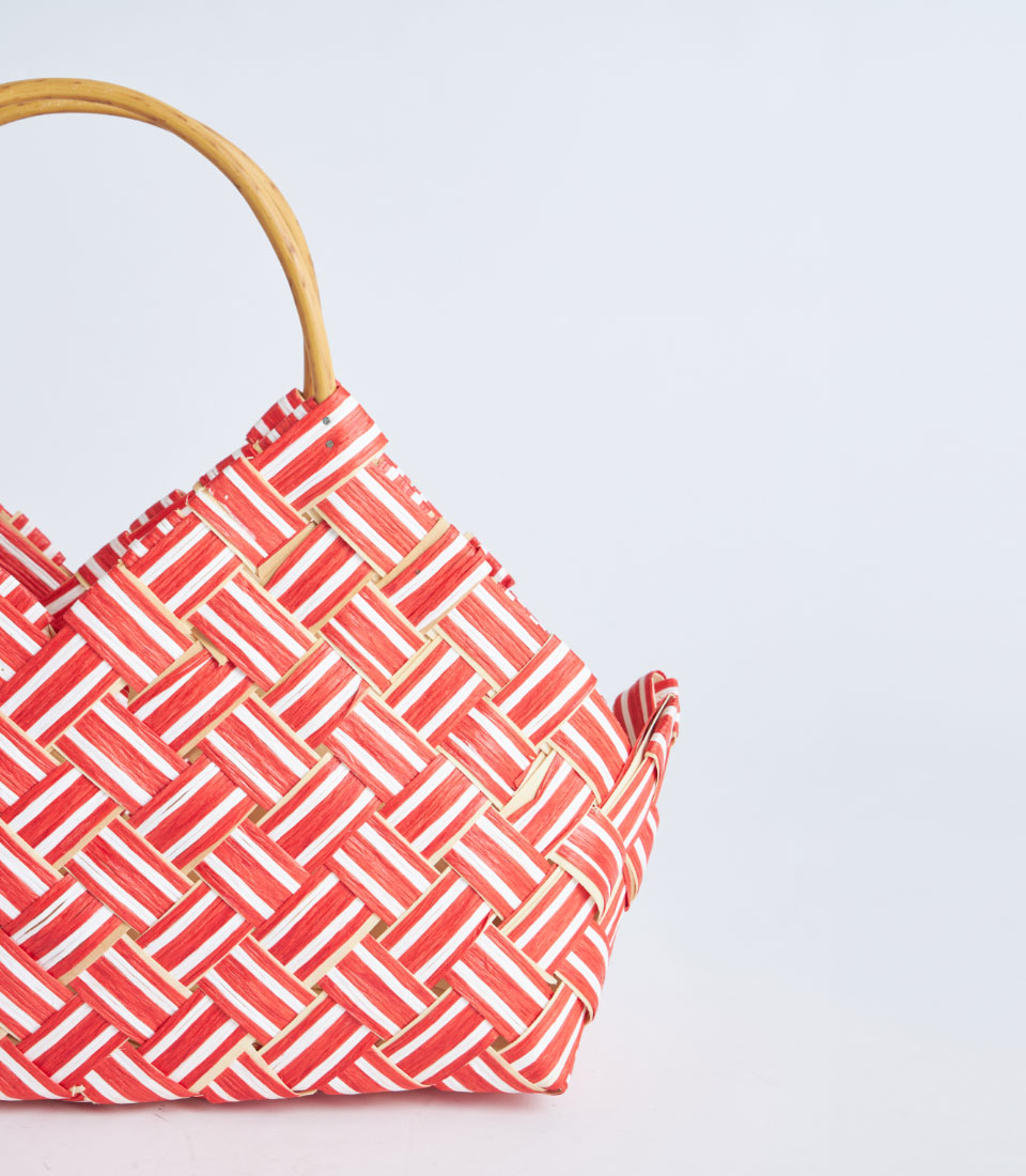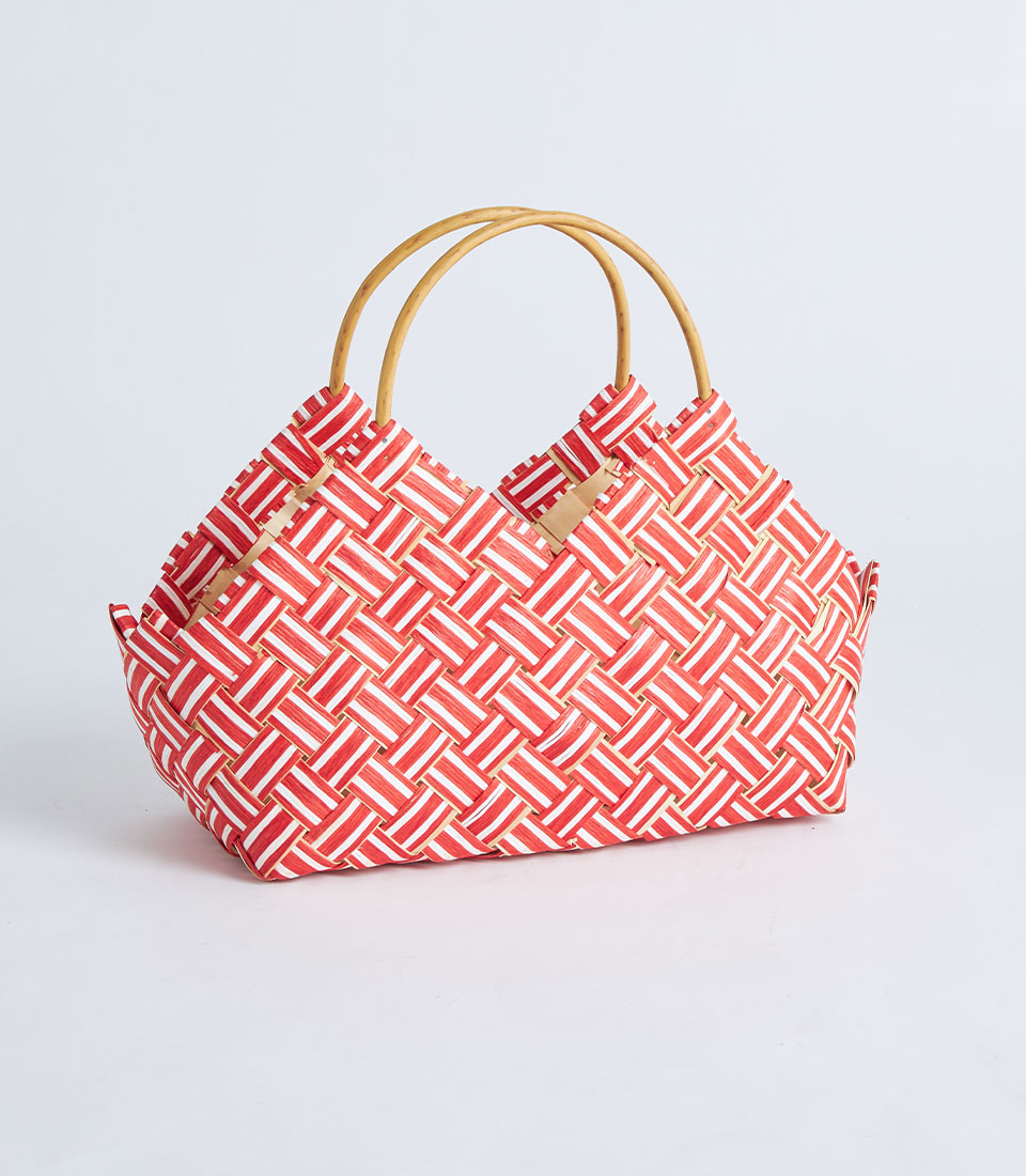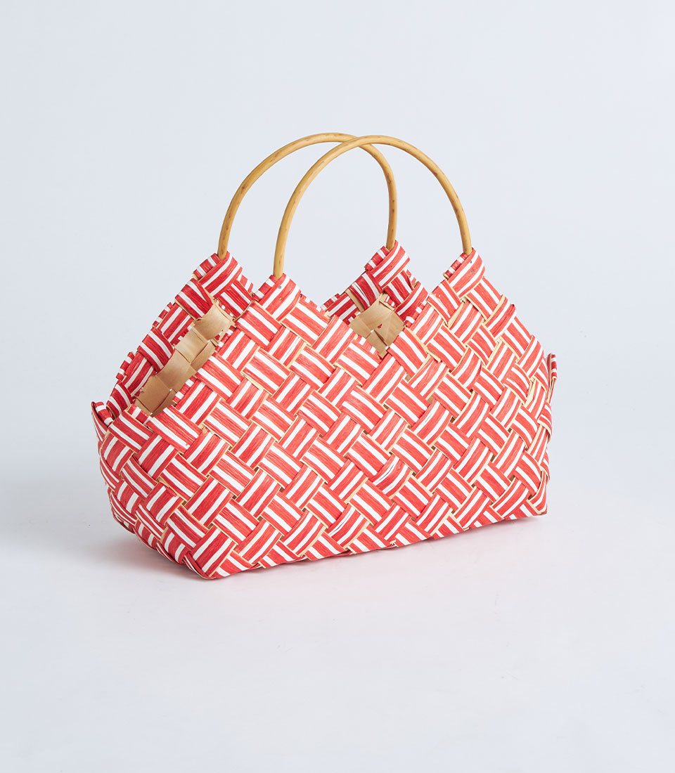The basket is designed with sturdy handles for easy carrying while maintaining a clean and elegant appearance. The bold red tone and patterned texture make it especially suitable for seasonal hampers and curated gift collections.
