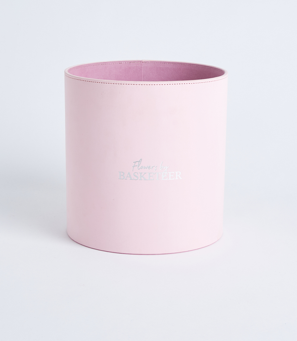 The cylindrical shape provides a structured and balanced form, allowing flowers and gift items to be arranged neatly while maintaining stability. The blush pink tone adds a gentle and feminine touch, making it suitable for a variety of occasions.